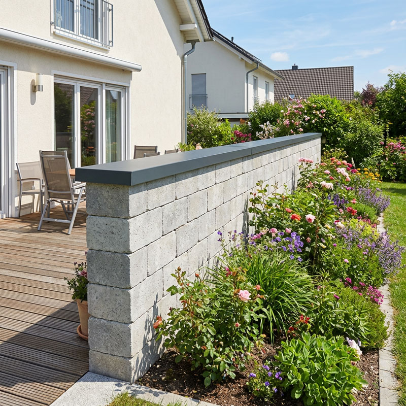 Hinter dem klaren Design steckt durchdachte Funktion: Unsere Mauerabdeckungen schützen Ihre Mauer zuverlässig vor Witterungseinflüssen – und das über viele Jahre.