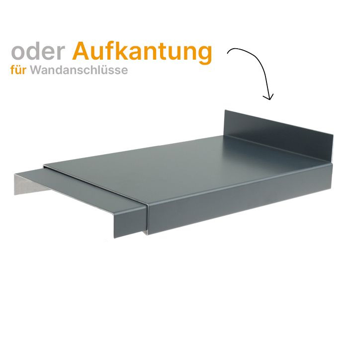 - Wandanschluss: Die Abdeckung wird am Ende aufgekantet, damit ein Fugendichtband angebracht werden kann. So lässt sich die Abdeckung sauber an eine Wand anschließen und abdichten.